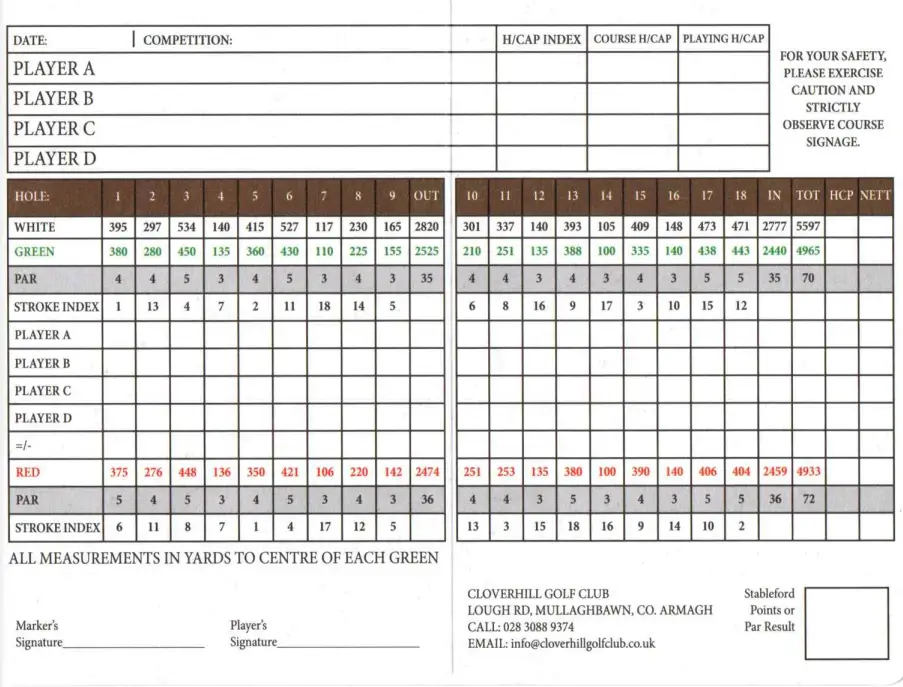Full Address: Cloverhill Golf Club, Newry, Down, BT35 9XP, Northern Ireland