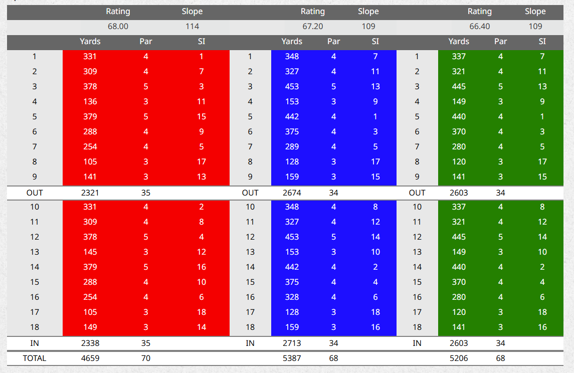 Where available, on-site facilities and nearby practice options are listed on this page.